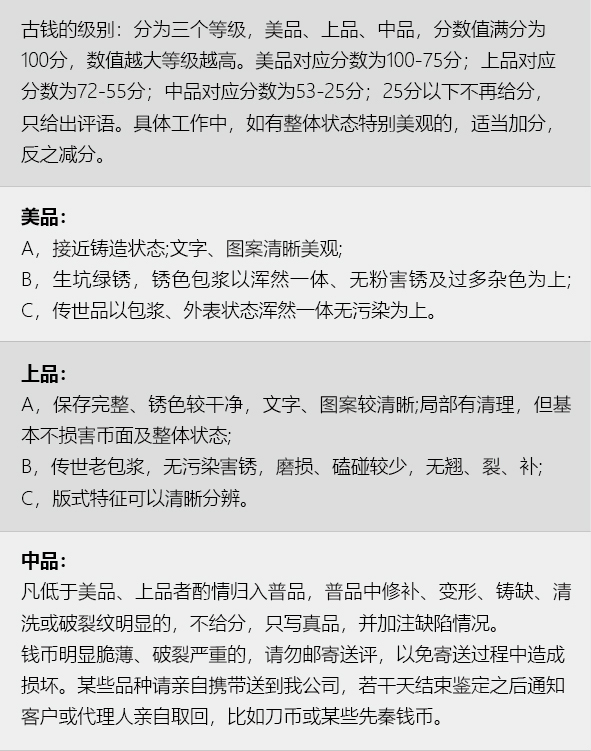 5、如果是在收藏和交易中,为了掩盖原有瑕疵、对元宝进行打磨、敲击、用物理方式去除表面锈蚀等的后期伤害,形成的新的瑕疵的,可以根据伤害的严重程度,扣1到3档的分数。